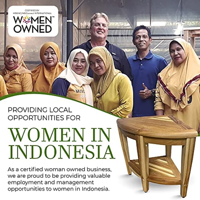 • Production durable et éthique : Fabriqué par une entreprise certifiée dirigée par une femme, ce tabouret de douche en teck reflète l’engagement de la marque envers la qualité et l’autonomisation. Chaque pièce est issue de sources responsables et conçue avec soin. Bancs de douche en teck.