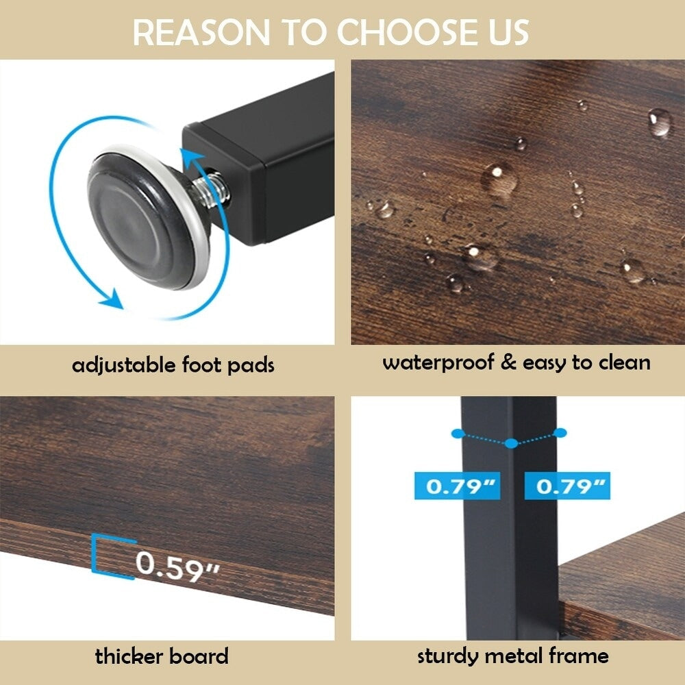 Structure stable : Fabriqués à partir de panneaux de particules E1 de haute qualité et respectueux de l’environnement et d’une structure en tubes d’acier inoxydable épaissis, nos bibliothèques et étagères sont extrêmement robustes, stables et durables, et peuvent supporter une charge allant jusqu’à 136 kg (300 lb). Un support arrière en acier décalé a été ajouté pour renforcer la robustesse et la fermeté du présentoir.