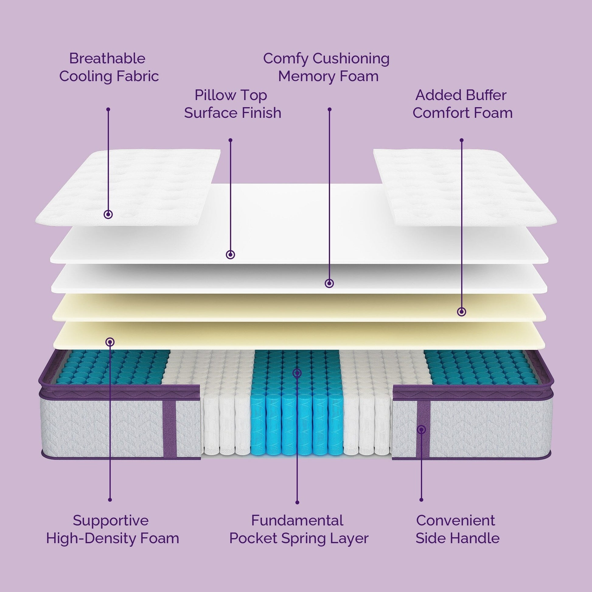 Confort moelleux à fermeté moyenne - le système de soutien à ressorts ensachés et à mousse multicouche de luxe offre une sensation de fermeté moyenne tout en étant confortable. Un grand soulagement pour ceux qui souffrent de maux de dos et de cou.